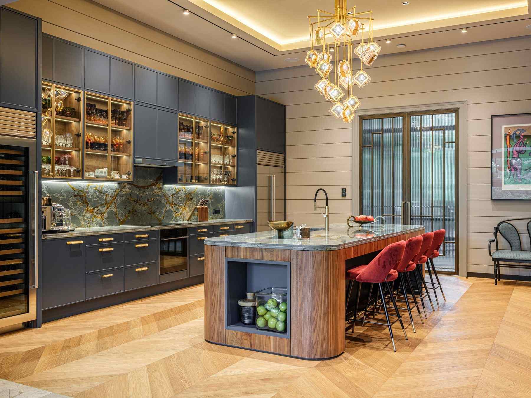 Я мечтала о зеленой кухне. Хотелось, чтобы она была необычной, с витражными стеклами, латунными ручками и деревом. Когда нашли нужный оттенок, я поняла — это она!